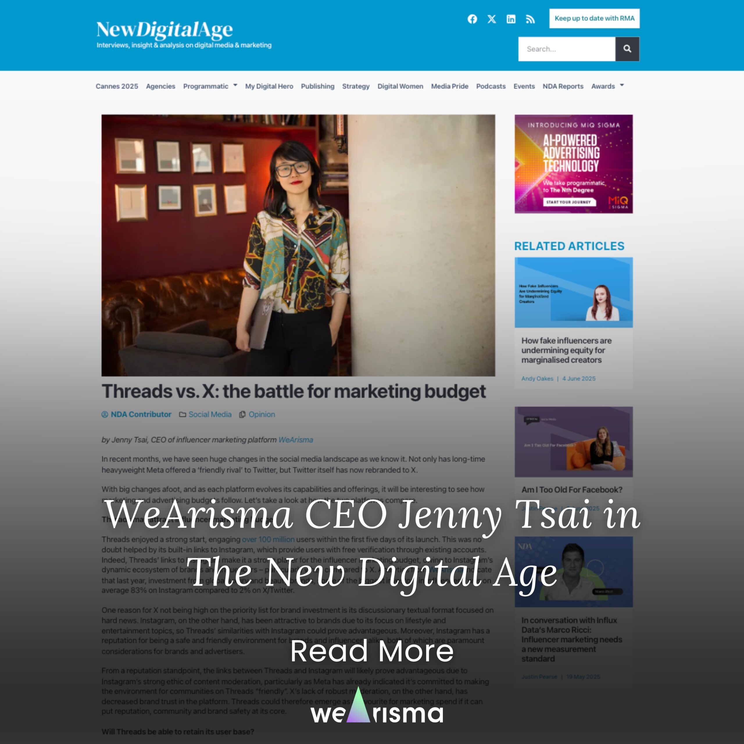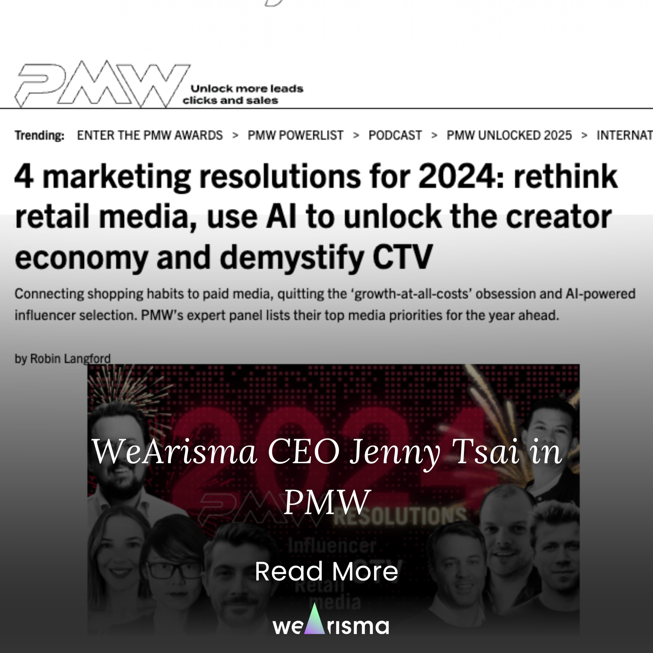 WeArisma’s CEO, Jenny Tsai, featured in Performance Marketing World, emphasizes the pivotal role of influencers on platforms like Instagram and TikTok in brand discovery for 2024, urging brands to leverage AI tools for comprehensive analytics and maximum ROI.