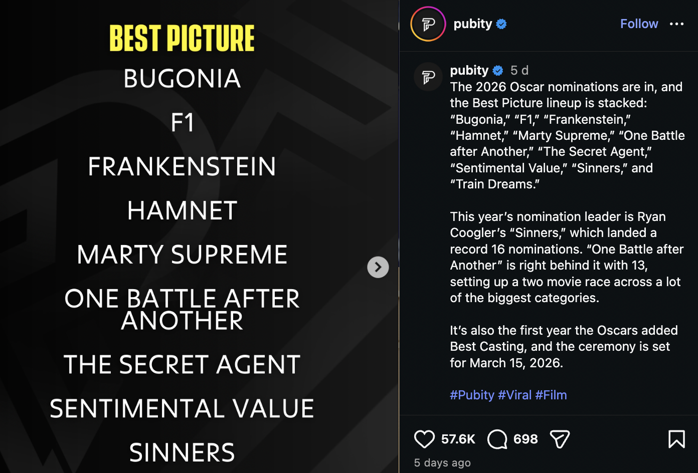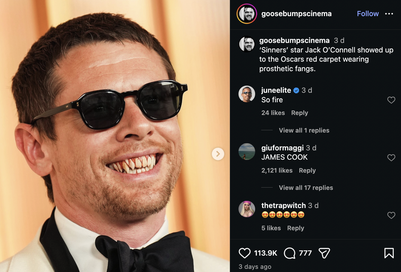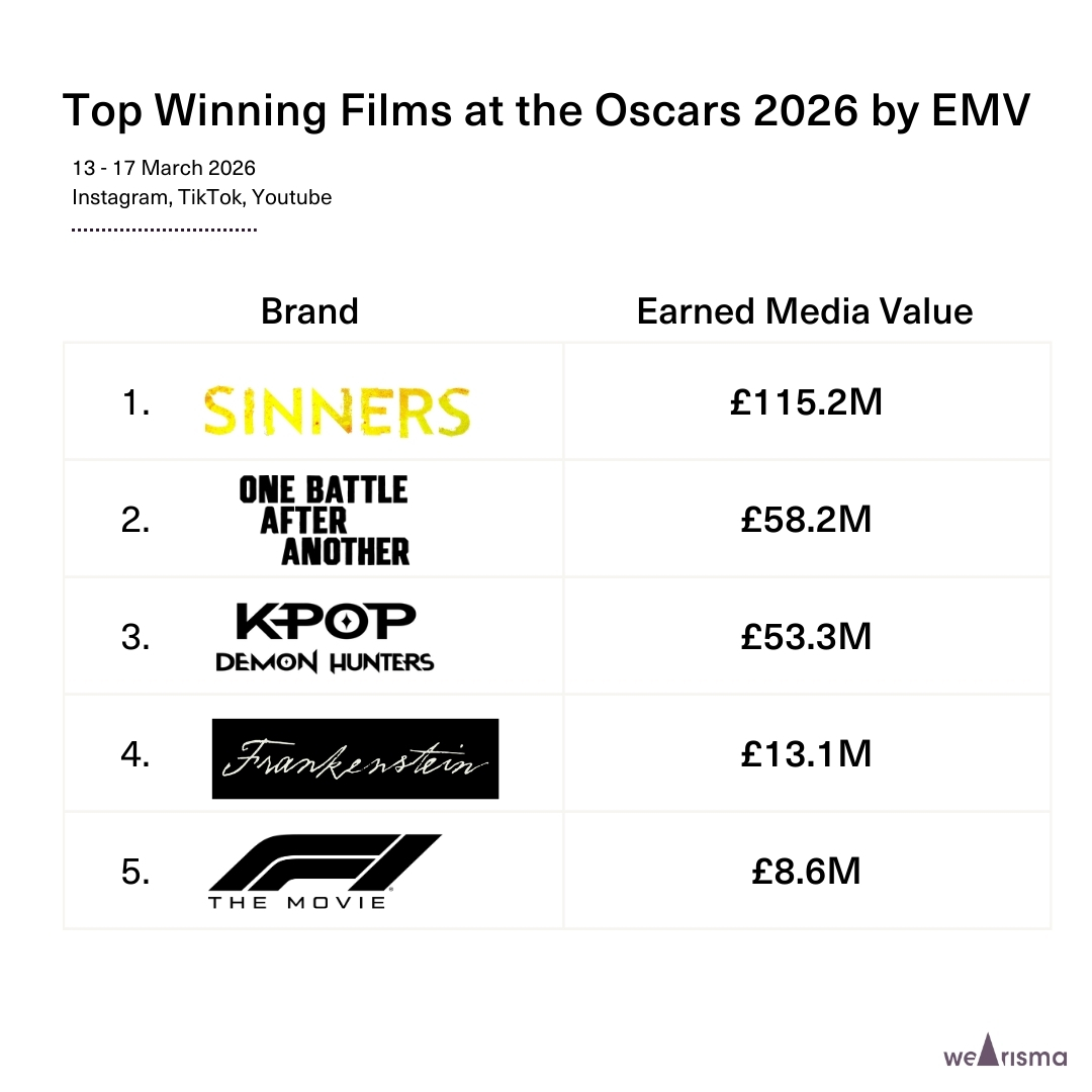 Film-focused blogger Goosebumps Cinema generated over £550K in EMV across four posts. Meanwhile, a single piece of content from social media personality Reece Feldman, capturing Michael B. Jordan’s award-winning moment, generated £253K in EMV and over 233K engagements.