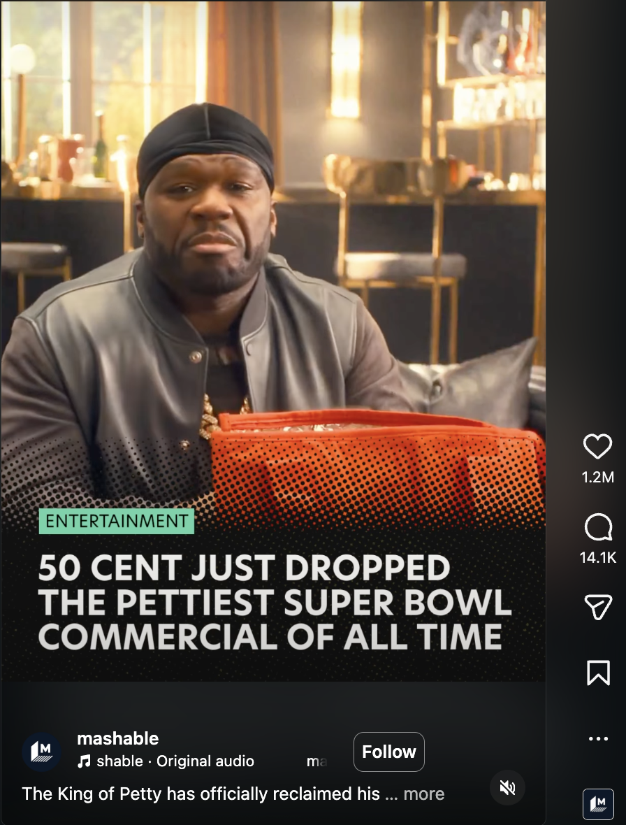 DoorDash’s Super Bowl activation was anchored by a celebrity-led commercial featuring 50 Cent, using cultural recognition and humour to drive immediate post-game conversation.
