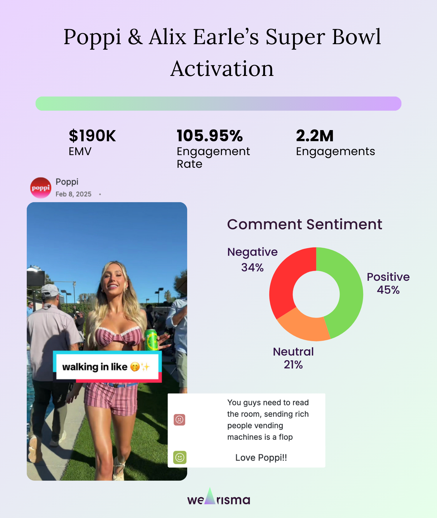 Influencer partnerships like this can drive enormous reach, and on the surface, the results look impressive. The post generated 2.2M engagements, an engagement rate above 100%, and delivered an estimated $190K in Media Value.